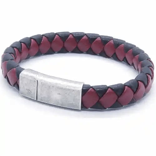 Armbånd i sort rød fiber læder.Oxyderet stållås med magnet.12mm bred og kan købes i flere længder.