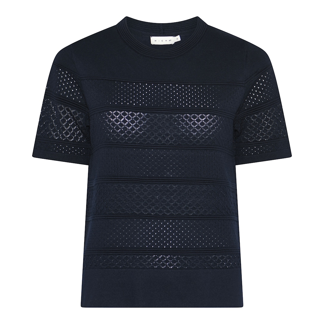 MICHA Elegant Stribet Strik – Rød/Navy – L