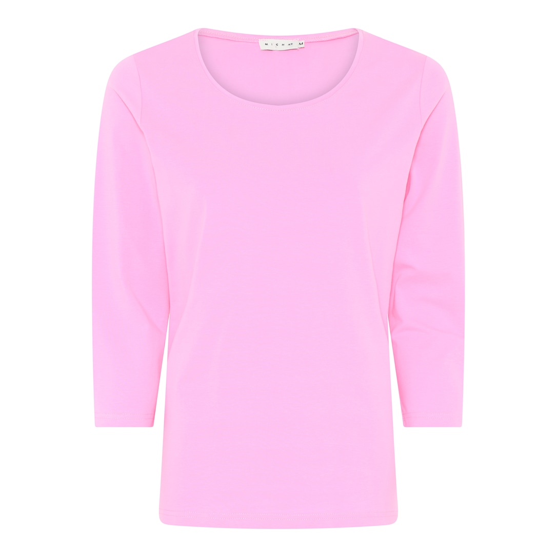 Denne alsidige top fra MICHA i pink er din go-to for ubesværet stil hver dag. Den komfortable pasform og høje kvalitet sikrer, at den holder form og farve vask efter vask. Materialet består af 95%Cotton/5%Elastane, hvilket giver en behagelig følelse mod h