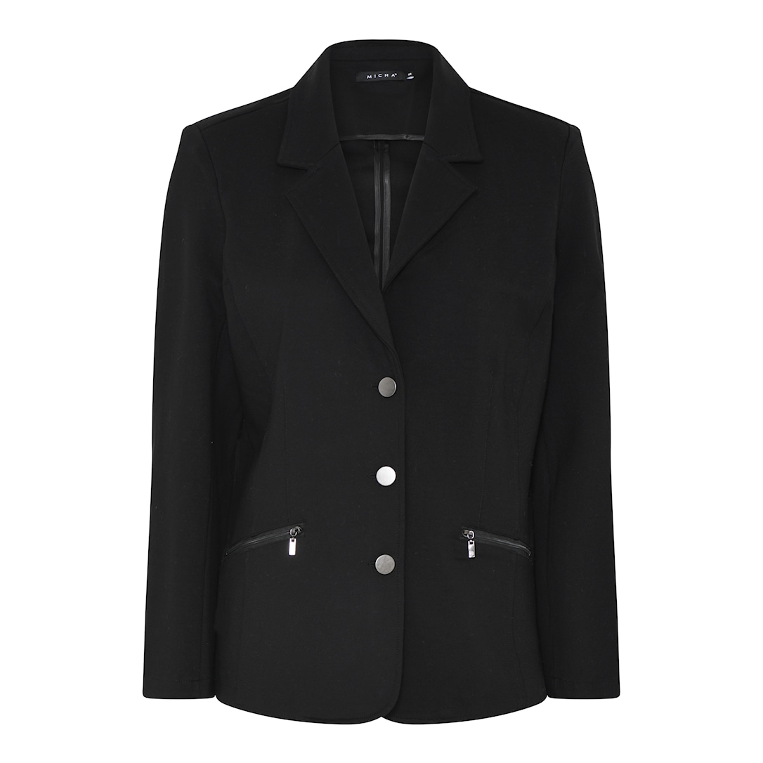 Denne alsidige top fra MICHA i sort er din go-to for ubesværet stil hver dag. Den komfortable pasform og høje kvalitet sikrer, at den holder form og farve vask efter vask. Materialet består af 65%Visco, hvilket giver en behagelig følelse mod huden og sikr