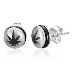 Ørestick.”Cannabis” design.Kirurgisk Rustfrit stål (Nikkelfri)Str. 0.9 cm.(1 stk)