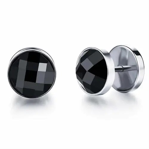 Ædelstål ørestik med sort agat sten på 1,2 cmPrisen for denne ørestik er pr. stk.