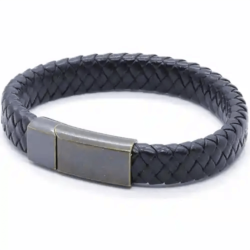 Armbånd i sort læderflet og mørk stålmagnet lås.Bredden er 12mm og kan købes i flere længder.